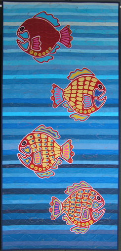 Fish Evolution 61 x 127 cms Machine pieced and quilted.